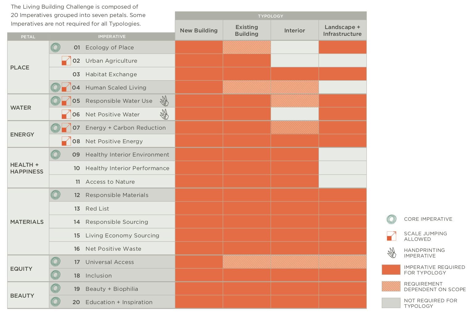 - Living Building: For buildings that achieve results in all 20 Imperatives.