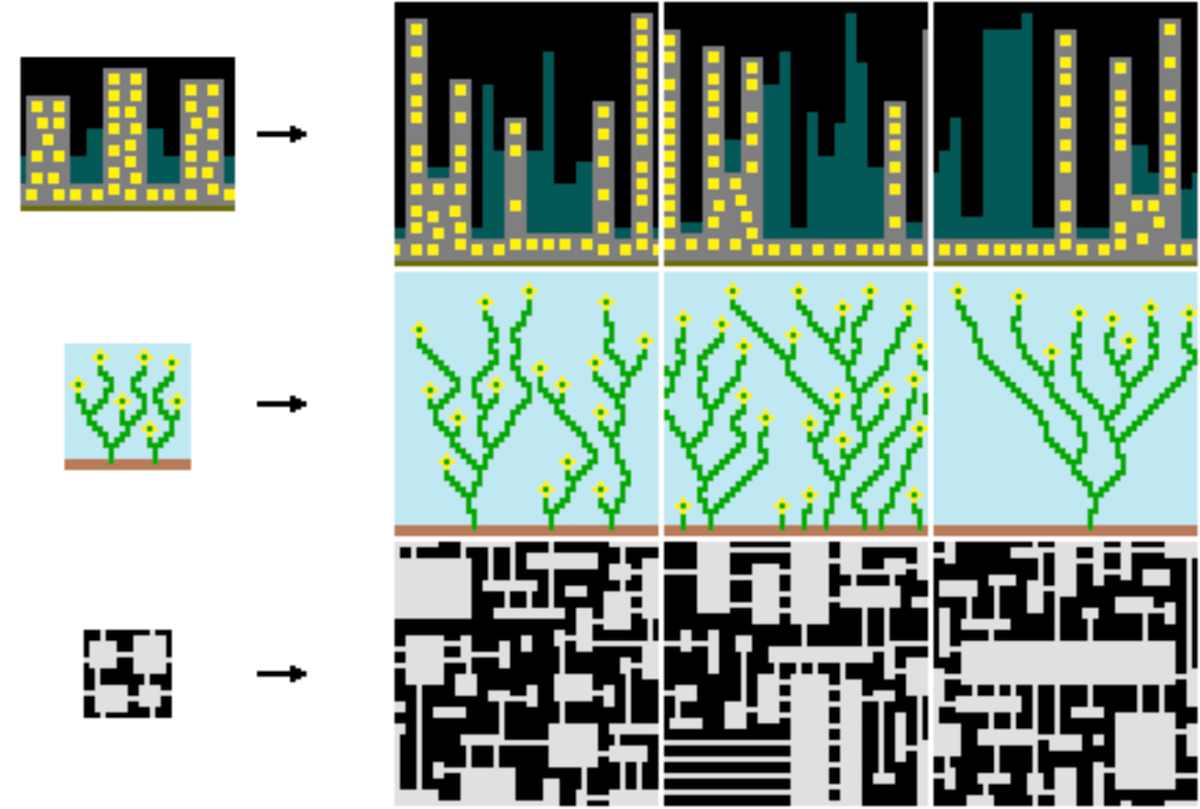 We can review these reflections in the context of a popular technique for design generation at the moment, WFC. WFC has an interesting property in that it broadly links the Chomskyan-generative (ie limited-rule-and-element-based) and statistical-generative paradigms.