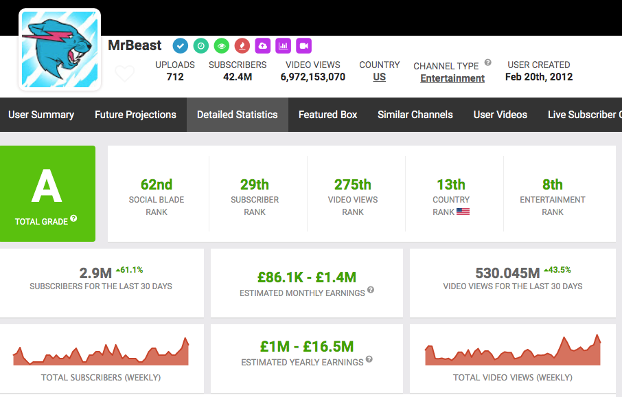 - creators: creators really do exist on YouTube. One of the obvious flaws of magic recommendation engines, auto-follows, and (surely?!) fake viewstats on TikTok is that creators might get a pop of views, but that doesn't give them a stable or growing audience, let alone a community. YouTube, of all the streaming video platforms, has - not without past and ongoing flaws, particularly inconsistency around monetization - built a fascinating culture of creators, many of whom invent whole genres on the platform. @mrbeast6000 has created what I call gonzo philanthropy on his channel, and has some of the highest views, and most loyal followers, of any media personality ever: half a billion views per month, at the age of 22.